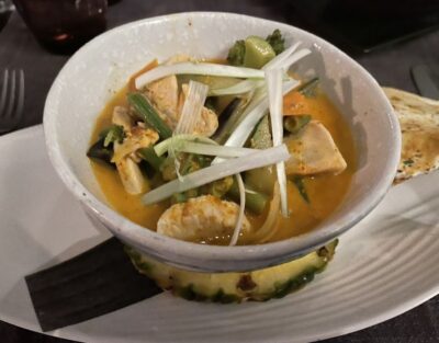 Wij opteerden bij onze ontdekking voor een combinatie van Indische en Thaise gerechten met een leuk en pittig assortiment van voorgerechten uit beide landen. Voor het hoofdgerecht werd de keuze een tikkeltje moeilijker maar uiteindelijk werden ook creaties uit beide gebieden geserveerd, waarbij de chef er wonderwel in slaagde om iedereen met een behaaglijk gevoel huiswaarts te sturen.