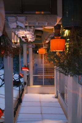 COBRA HOUSE bestaat uit verschillende ruimtes die elk een eigen sfeer uitstralen: Een restaurantzaal met zicht op de tuin: Een overdekte, verwarmde patio waar je buiten zit met de warme dynamiek van binnen; Een bar in het verlengde van de patio voor cocktails en bar bites; Een salon met open haard ; Een tuin van 1000 m² met verschillende eilandjes, een wilde Engelse tuin, kippen en een zelfvoorzienende moestuin. Binnen het pand blijven ook de bestaande zaken Domestic en Bunch actief. COBRA HOUSE voegt zich daartussen met een uitgesproken eigen identiteit en versterkt de dynamiek van het geheel.