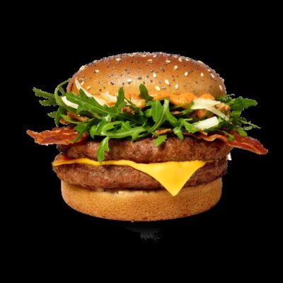 Elke variant wordt getopt met cheddarkaas, knapperige reepjes bacon, frisse rucola en verse uien. Afgewerkt met krokante gefrituurde uitjes en geserveerd op een zacht broodje met maan- en sesamzaadjes, levert dit een gelaagde smaakervaring die liefhebbers van pittig eten zeker zal bekoren.