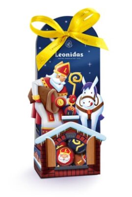 Zoals elk jaar besteedt Leonidas ook extra zorg aan de verpakking: kleurrijke, feestelijke en magische verpakkingen die de chocolade nog meer in de kijker zetten: Een mooi zakje met een feestelijk design, ideaal voor de kleine chocoladeballetjes. – Een geschenkverpakking voor de Sint van 400 g. – Een regeldoosje met tien kleine bolletjes.