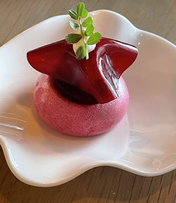 De Vacherin leuk decoratief, rustte op een bedje van witloof en kreeg naast een romig en smeuïg sausje ook enkele knapperige en overheerlijke stronkjes schorseneer mee. Een top presentatie van een lekker maar helaas vergeten groente. Tintelende en verrassend smaakhint ten overvloede.