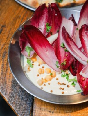 De humus met geroosterde bloemkool maakt plaats voor een lichtere lentevariant: Humus & Veggies, romige hummus geserveerd met rauw rood witloof en korianderzaadjes. Protein Salad (veggie): quinoa, boterbonen, kikkererwten, olijven, artisjok, feta, munt en een dressing met za’atar en citroen. Deze salade kan ook volledig vegan besteld worden met vegan feta.